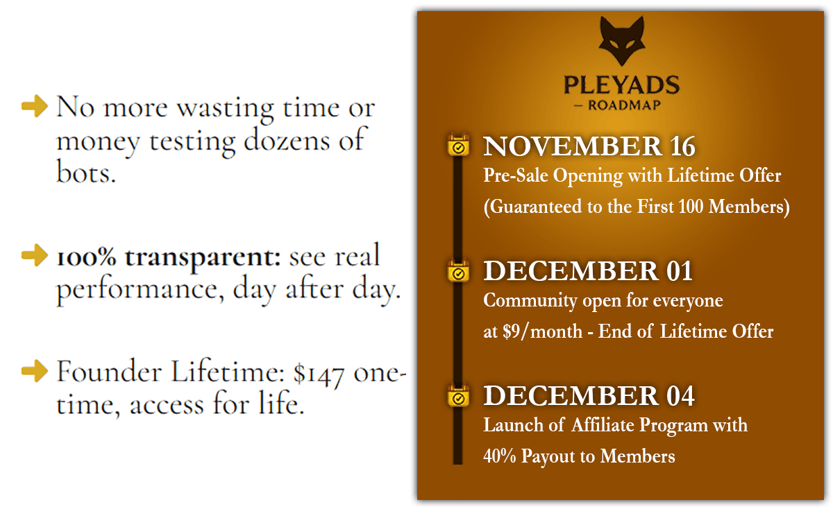 The Lifetime offer gives you permanent access to the PLEYADS community.